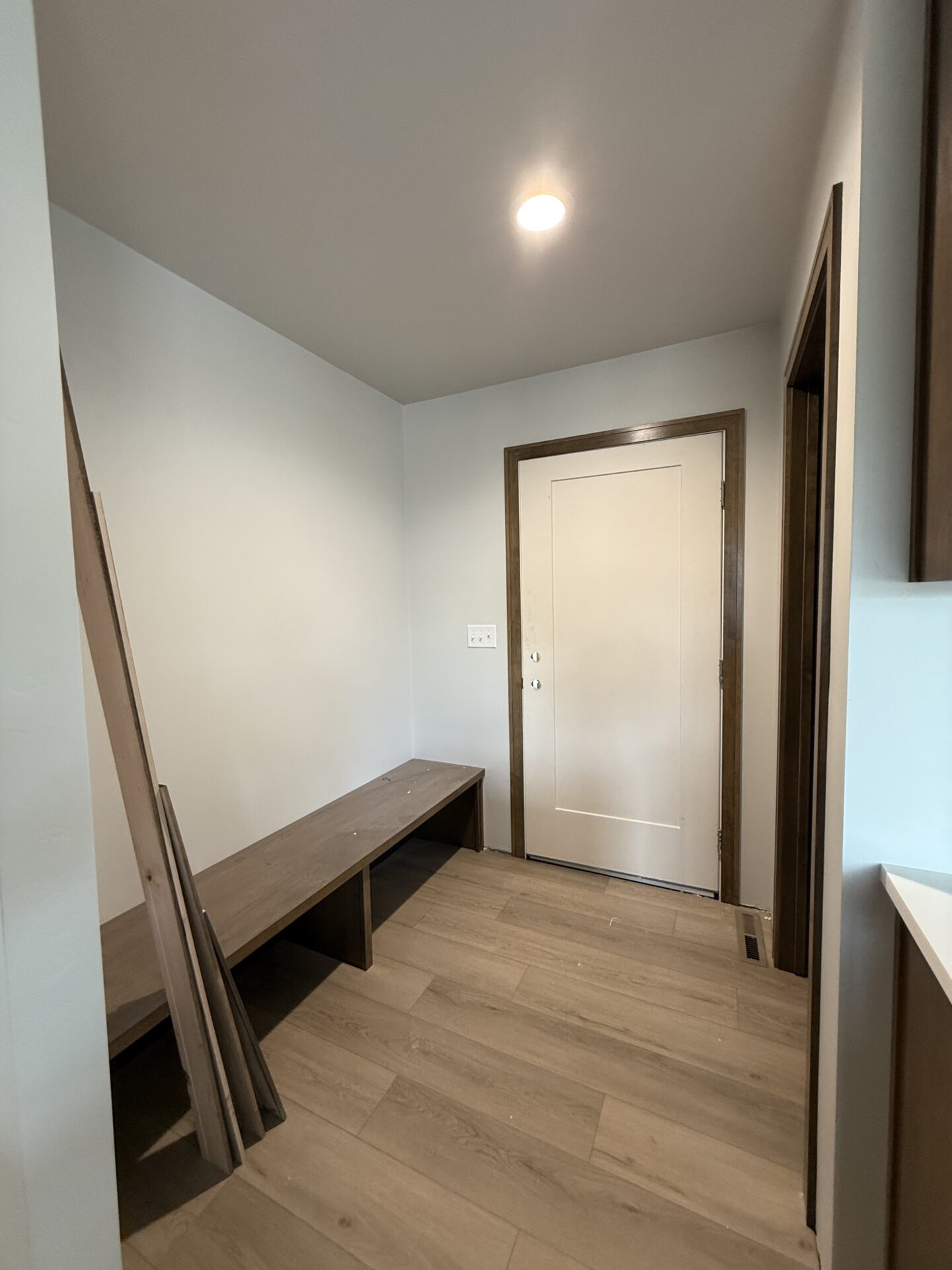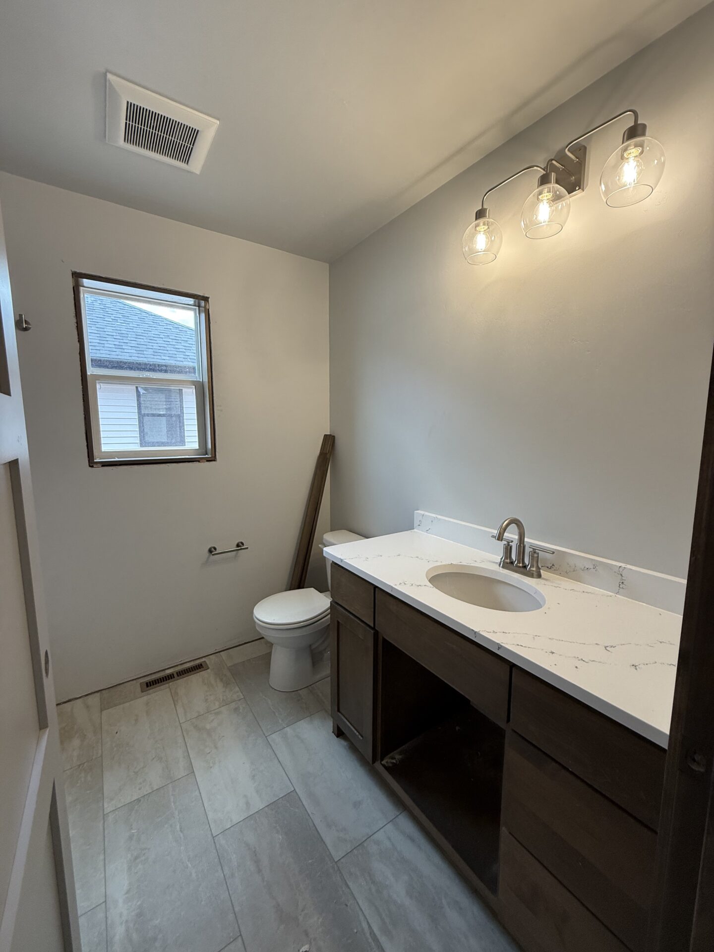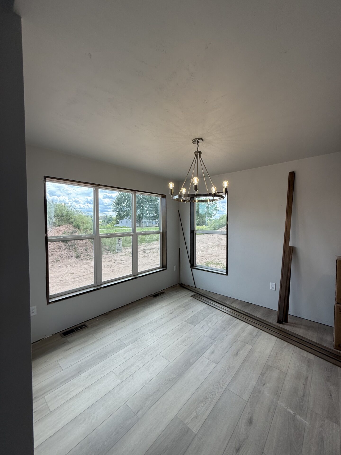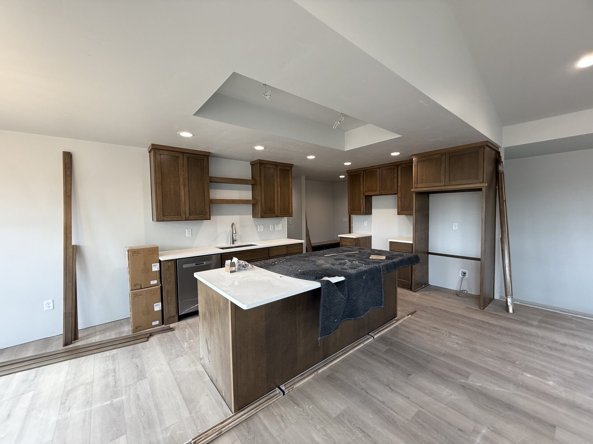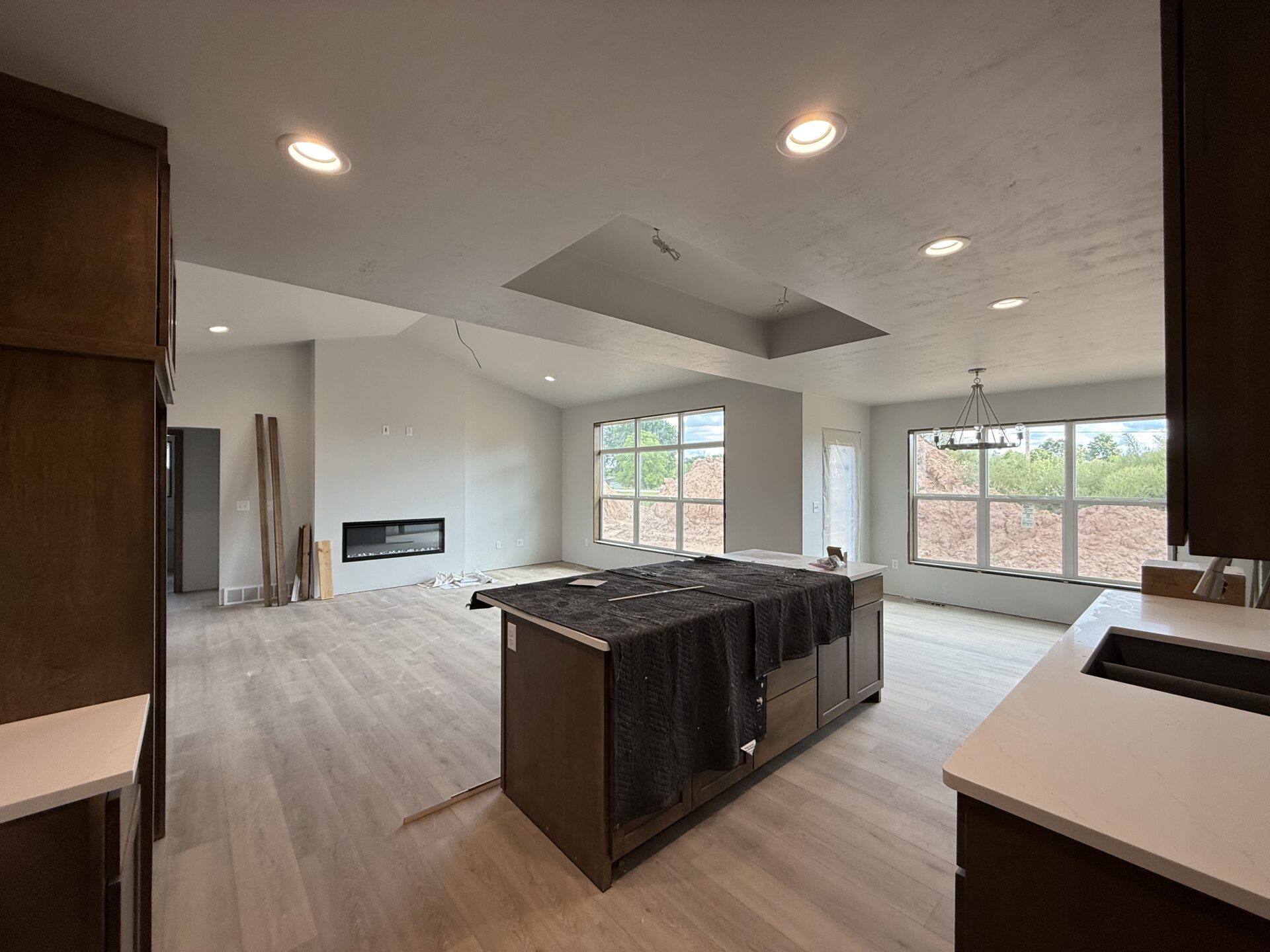 Welcome home to this spacious 3 bedroom, 2 bath ranch located in the highly desirable Bedford Heights subdivision in Bellevue! The kitchen boasts stunning custom maple, caramel stained cabinets accented by Calacutta Alto Quartz countertops & an Arabescato Venato natural stone backsplash. The kitchen opens to the main living area complete with a 50" Simplifire Allusion Platinum Linear Electric fireplace surrounded by Ardesia Kwik Stack stone and a cathedral ceiling featuring a gorgeous caramel stained beam. Terra Timber Meadow Sage LVP can be found throughout the main living areas. The primary suite features a large walk in closet & bathroom with dual sink vanity. Lower level is stubbed for full bath & has an egress window for future expansion.
