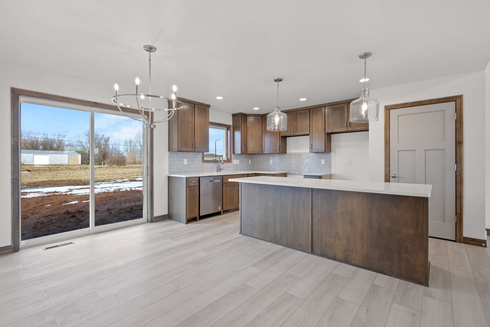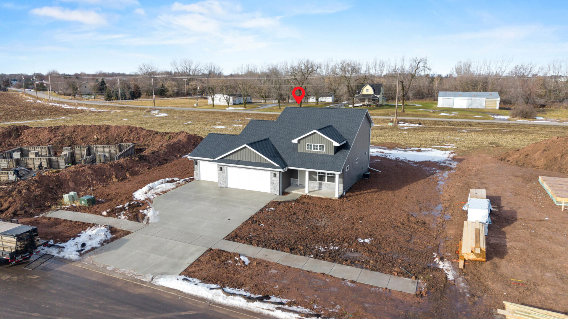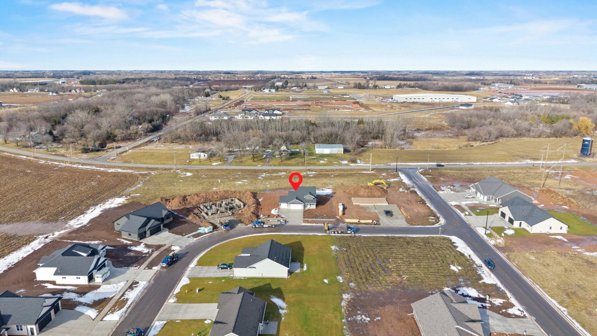 BUILT BY MEACHAM DEVELOPMENT, INC.-A FOCUS ON ENERGY CERTIFIED HOME-Step into this beautiful, 2 story design featuring a first floor primary suite complete with full bathroom, dual vanity & a generous walk in closet. The kitchen has stunning, custom built, Caramel stained maple cabinets with quartz countertops & tile backsplash to complete the look. The main level has an additional half bathroom with gorgeous tile accent wall behind the custom built painted vanity. The spacious upper level has two bedrooms & additional loft area. Lower level is stubbed for an additional bathroom & has an egress window for future expansion. The Town of Lawrence plans to develop Lot 9 further into a small park space with walking trails to serve the neighborhood.