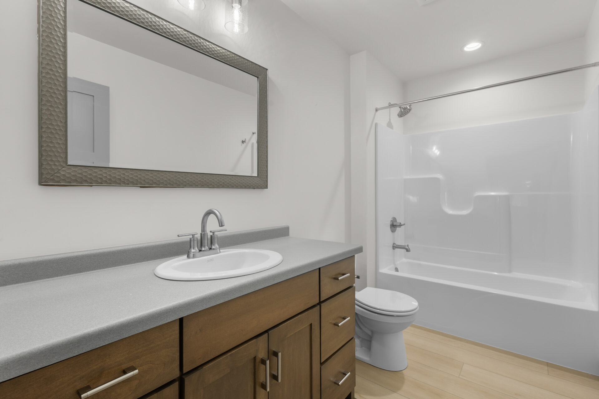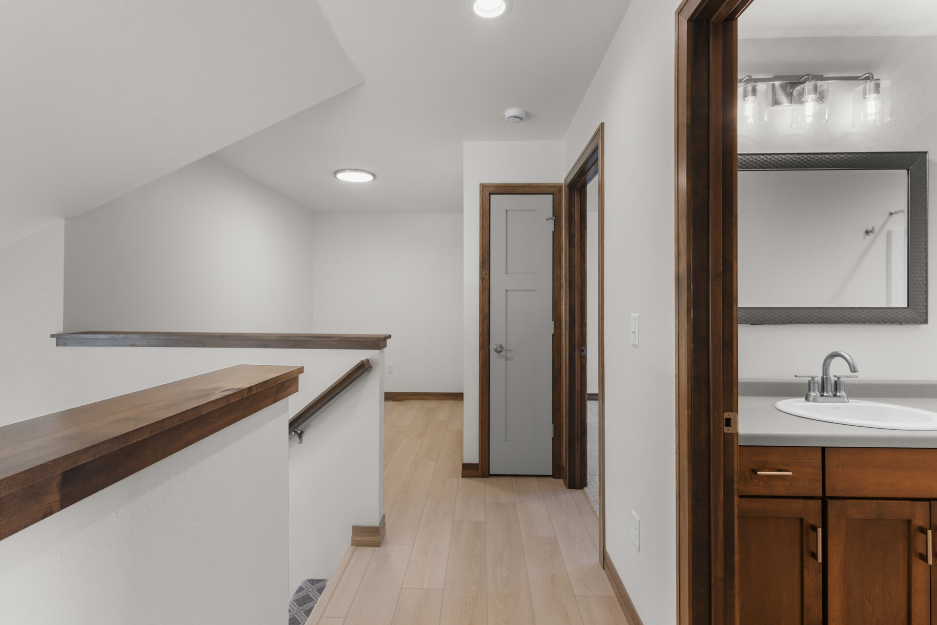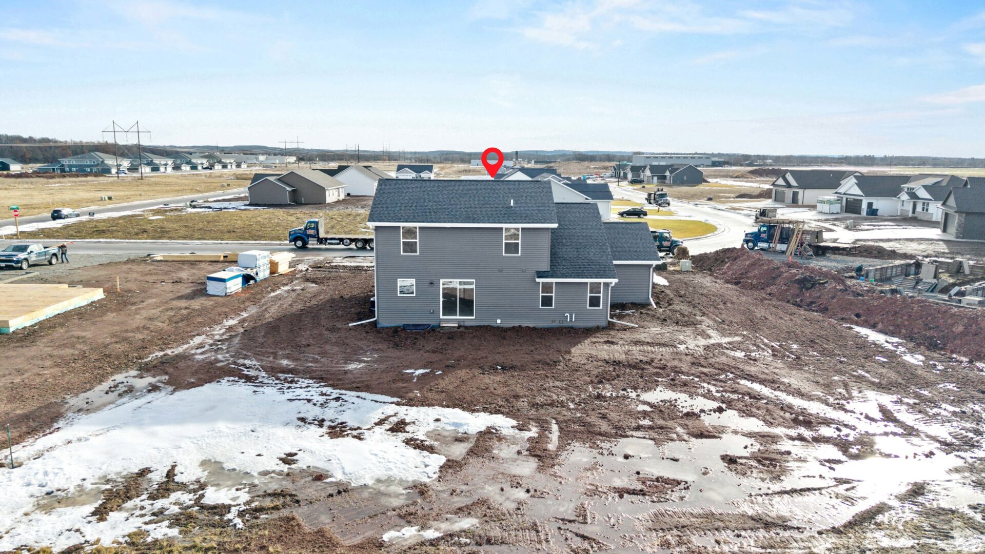 BUILT BY MEACHAM DEVELOPMENT, INC.-A FOCUS ON ENERGY CERTIFIED HOME-Step into this beautiful, 2 story design featuring a first floor primary suite complete with full bathroom, dual vanity & a generous walk in closet. The kitchen has stunning, custom built, Caramel stained maple cabinets with quartz countertops & tile backsplash to complete the look. The main level has an additional half bathroom with gorgeous tile accent wall behind the custom built painted vanity. The spacious upper level has two bedrooms & additional loft area. Lower level is stubbed for an additional bathroom & has an egress window for future expansion. The Town of Lawrence plans to develop Lot 9 further into a small park space with walking trails to serve the neighborhood.