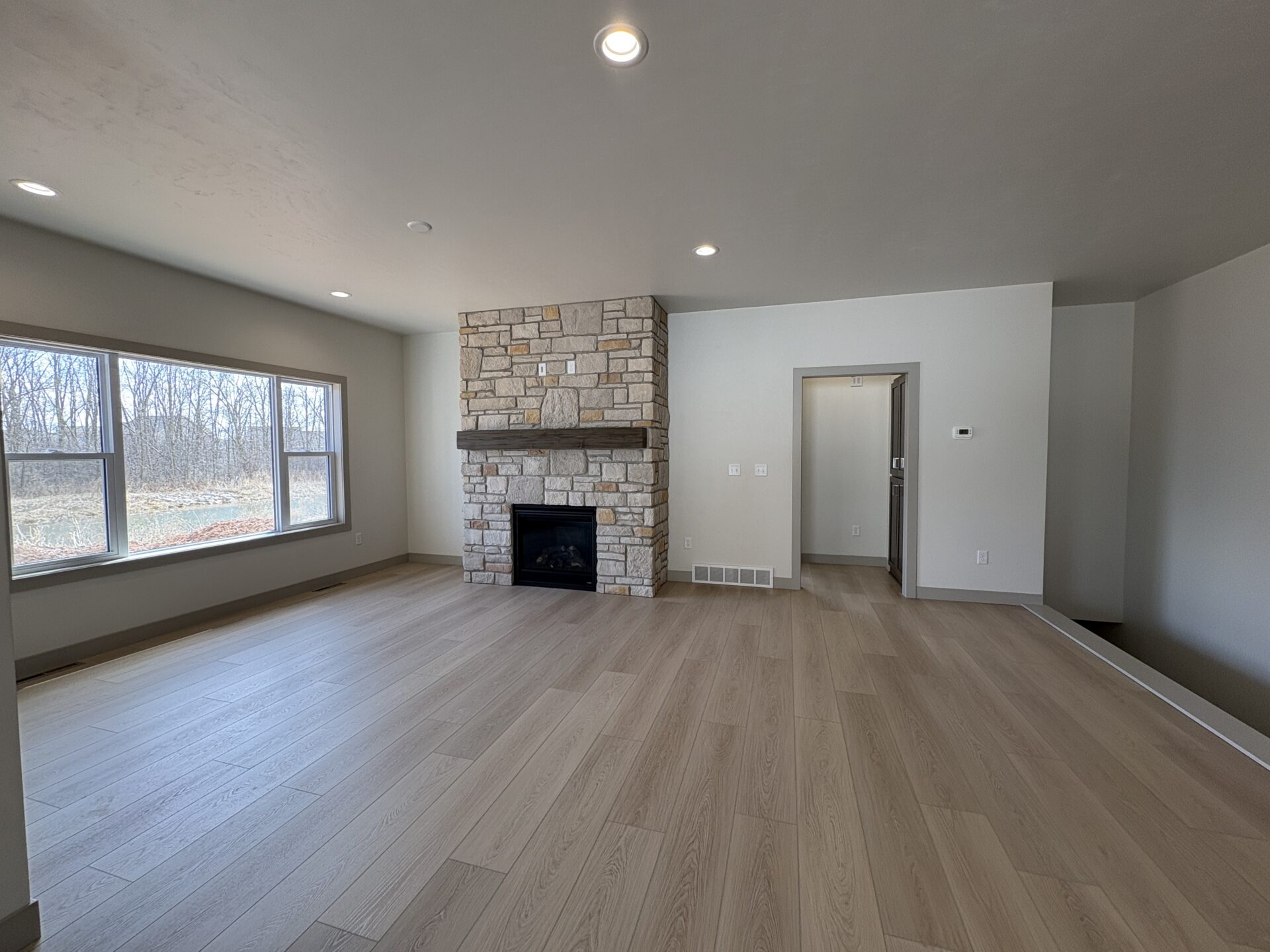 BUILT BY MEACHAM DEVELOPMENT, INC-A FOCUS ON ENERGY CERTIFIED HOME. This gorgeous zero step entry, 2 bed 2 bath home features an OVERSIZED GARAGE for all your extras! Entertain in your stunning kitchen beautifully accented w/ custom built oak cabinets stained Riverwood, Quartz Carrara Delphi countertops & tile backsplash. Relax next to the 33" Direct Vent gas fireplace elegantly surrounded by Bianco Blend stone from floor to ceiling. Enjoy the abundance of natural light in the sunroom which overlooks a pond & woods. Primary bedroom has ensuite bath w/ dual sink vanity with quartz countertops, spacious walk-in closet & direct access to the laundry room. LL is stubbed for full bath & has an egress window for future expansion. Monthly HOA fee is $175.00 & includes lawn care & snow removal.