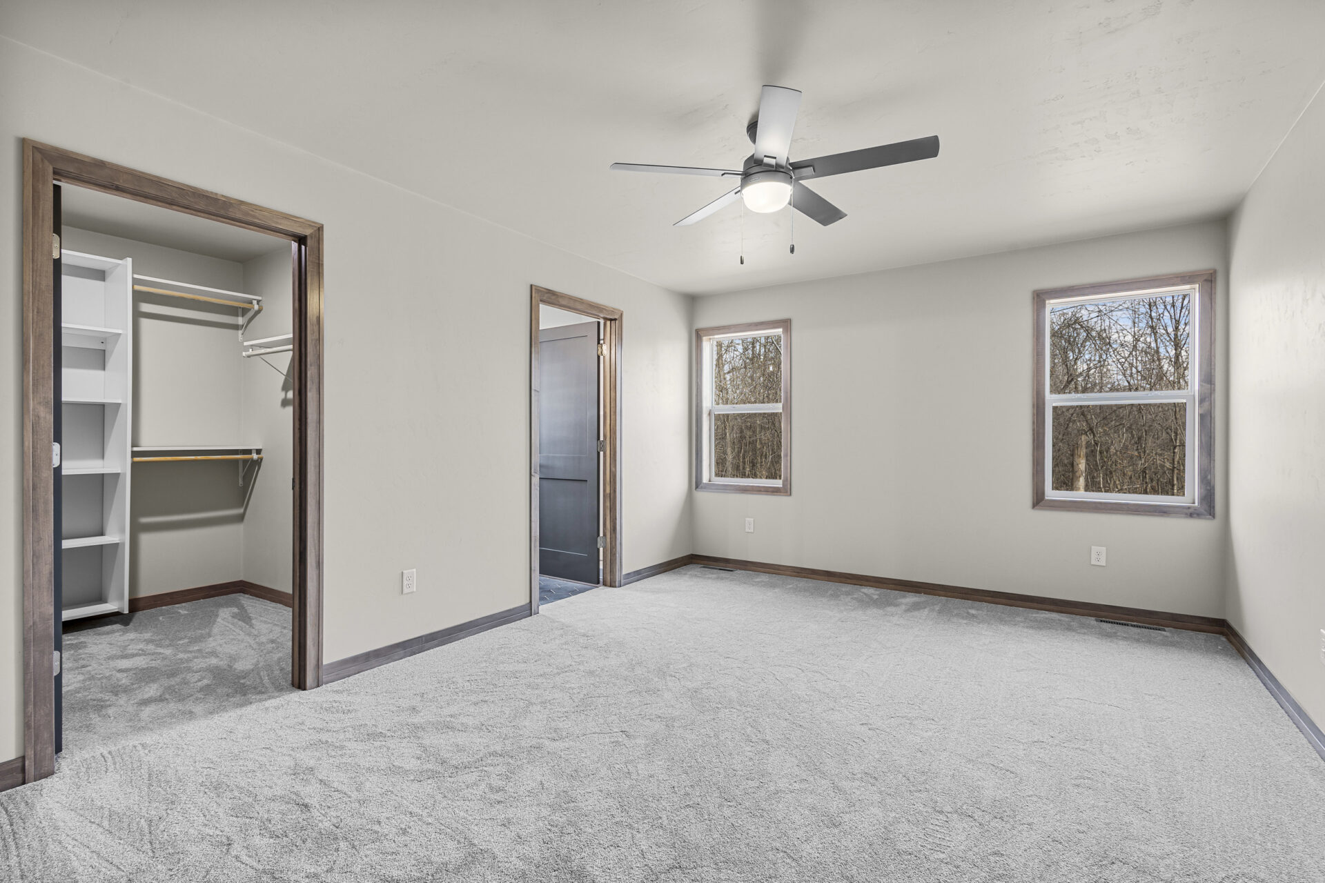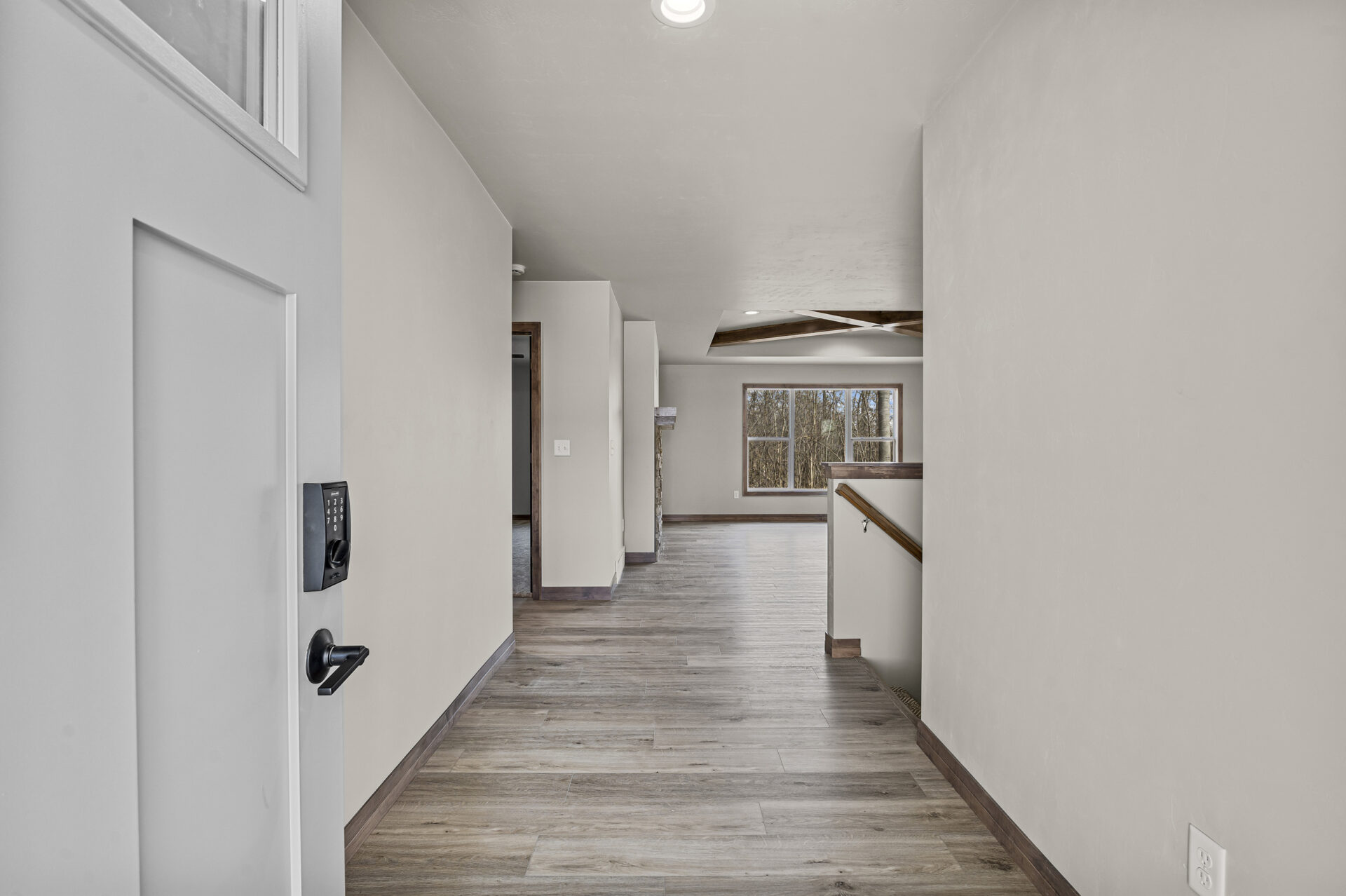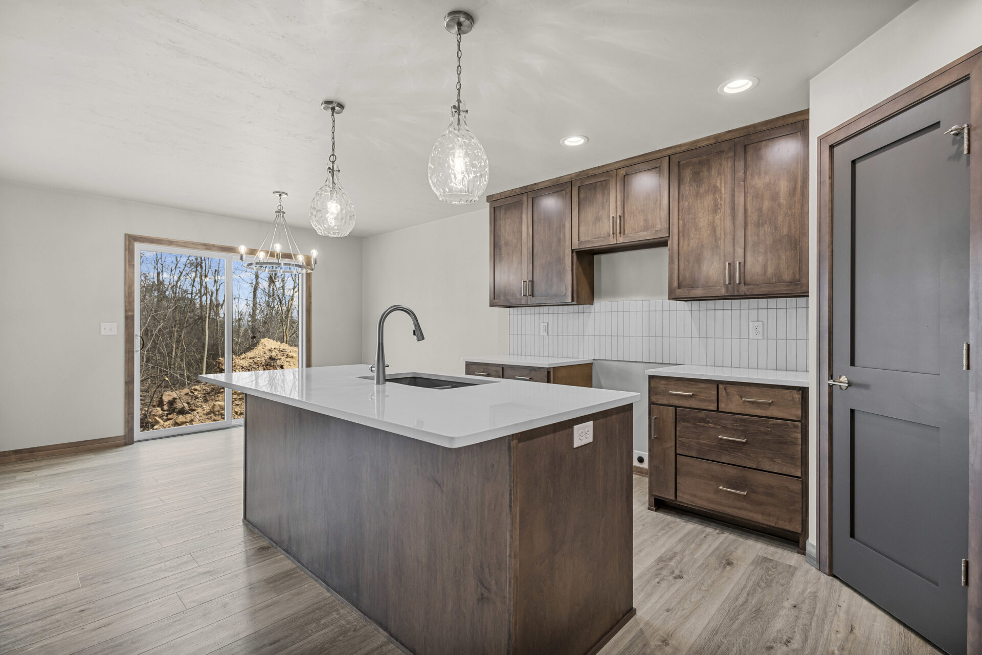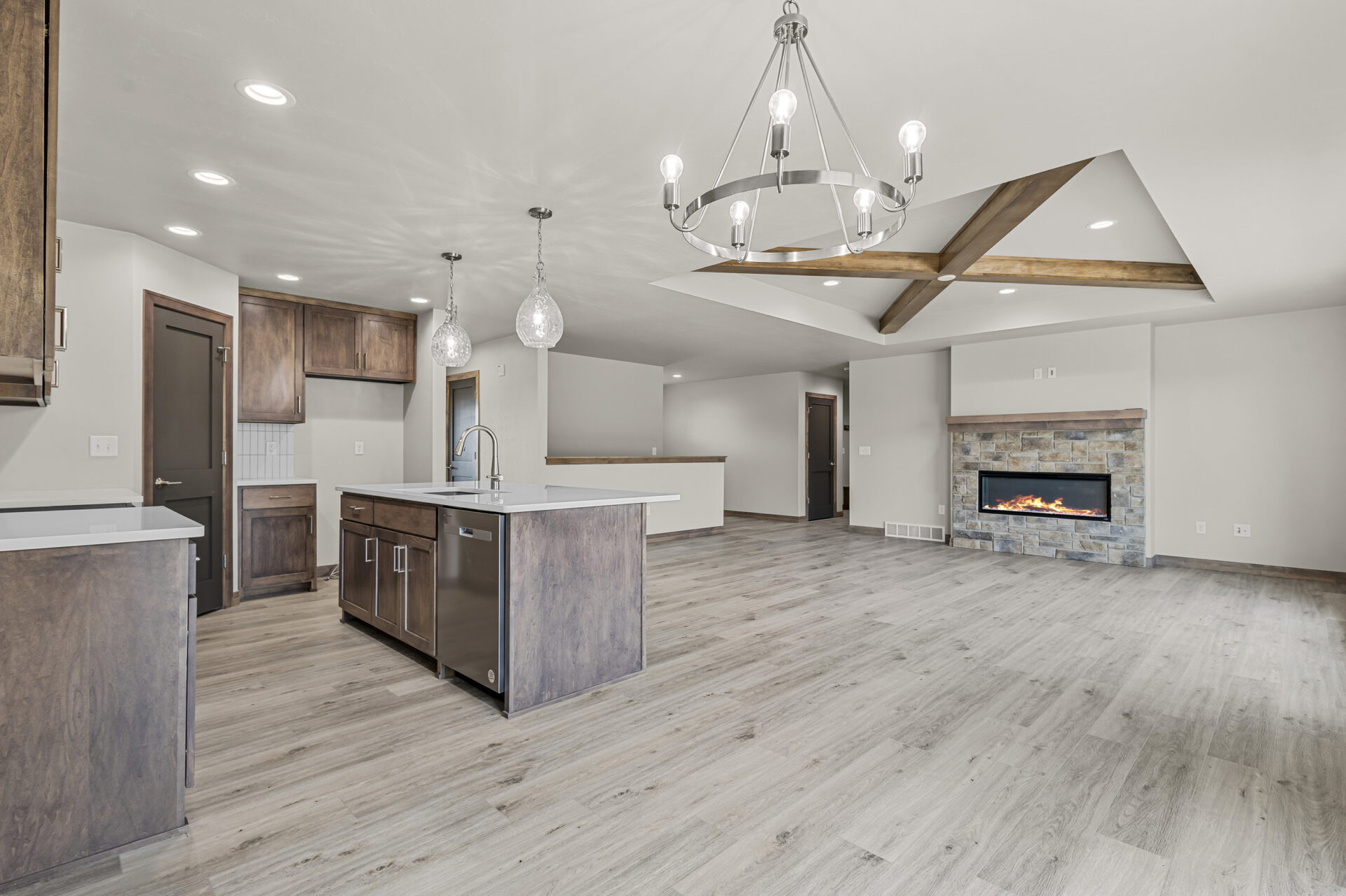 BUILT BY MEACHAM DEVELOPMENT, INC.-A FOCUS ON ENERGY CERTIFIED HOME. Country living on over 1.5 acres! Stunning 3 bed, 2 bath home! The kitchen features quartz countertops & walk-in pantry. The spacious great room features a 50" Simplifire Allusion Platinum Linear electric fireplace surrounded by beautiful stone. LVP flooring & caramel stain are found throughout main living areas. Add'l features include: split bedroom design, mud room & laundry room close to the spacious master suite. LL is stubbed for a bathroom & has an egress window for future expansion. Driveway apron is gravel. Water is a community well & there is a homeowner's association for the well, $225 quarterly or $900 for the year. Stubbed for water softener. Water softener recommended for this subdivision. PHOTOS SIMILAR TO