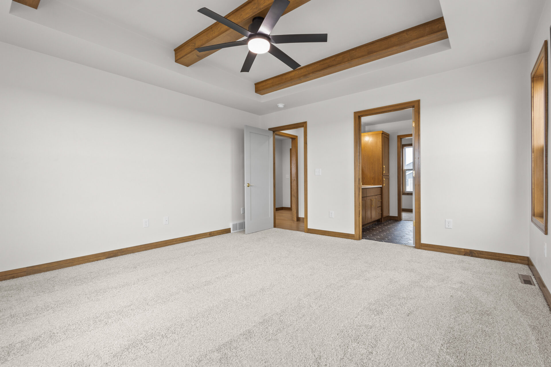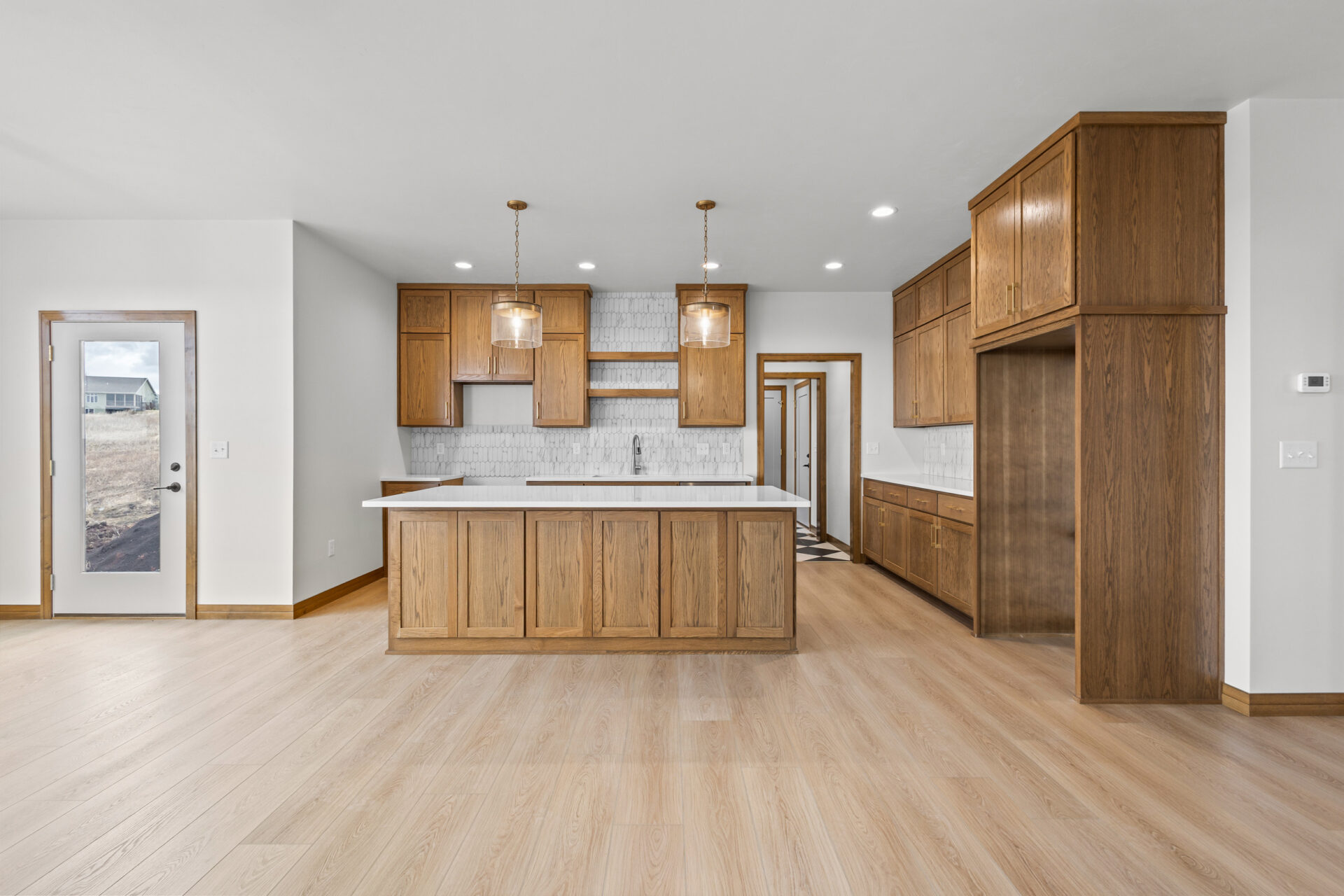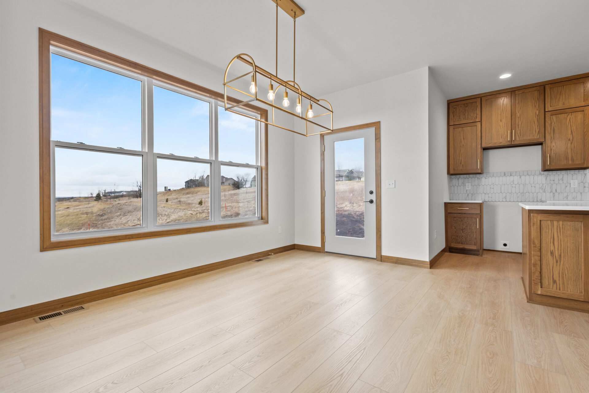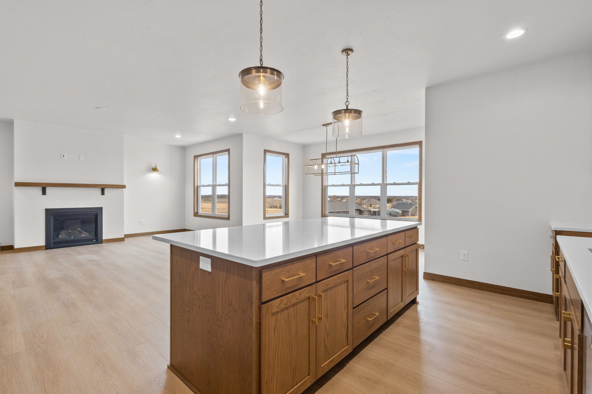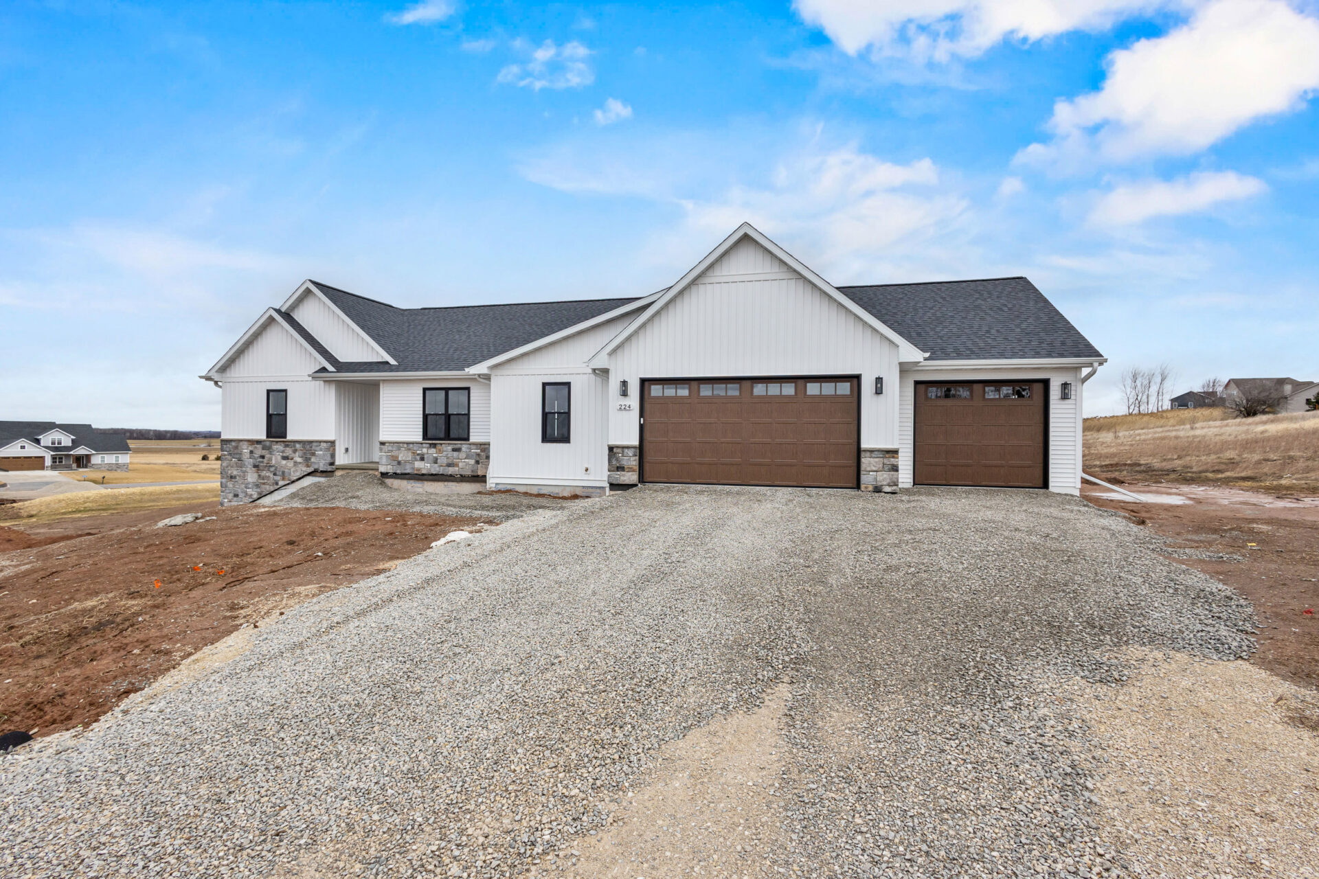 BUILT BY MEACHAM DEVELOPMENT, INC.-A FOCUS ON ENERGY CERTIFIED HOME.Don't miss this rare opportunity to own a home with uninterrupted panoramic views throughout. Large windows frame the scenery & provide abundant natural light in every room. The stunning kitchen features custom oak cabinets, quartz countertops, tile backsplash & large walk-in pantry. The spacious great room includes gas fireplace & gorgeous wood beam mantle. Primary bdrm is a private retreat with tile shower. Unfinished LL HAS 9" CEILINGS, is stubbed for a bathroom & is a FULL WALK-OUT for future expansion. Driveway apron is gravel. Water is a community well & there is a homeowner's association for the well, $225 quarterly or $900 for the year. Stubbed for water softener. Water softener is recommended for this subdivision.