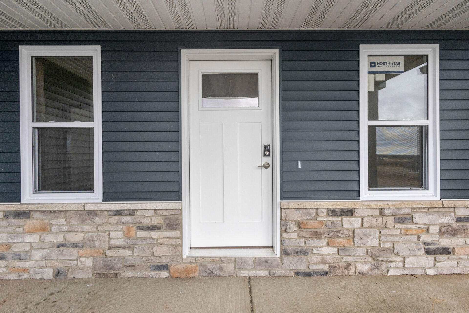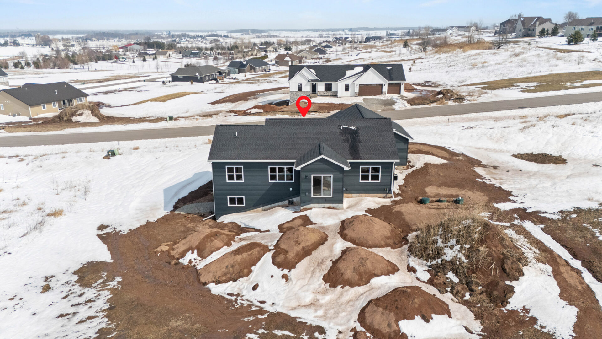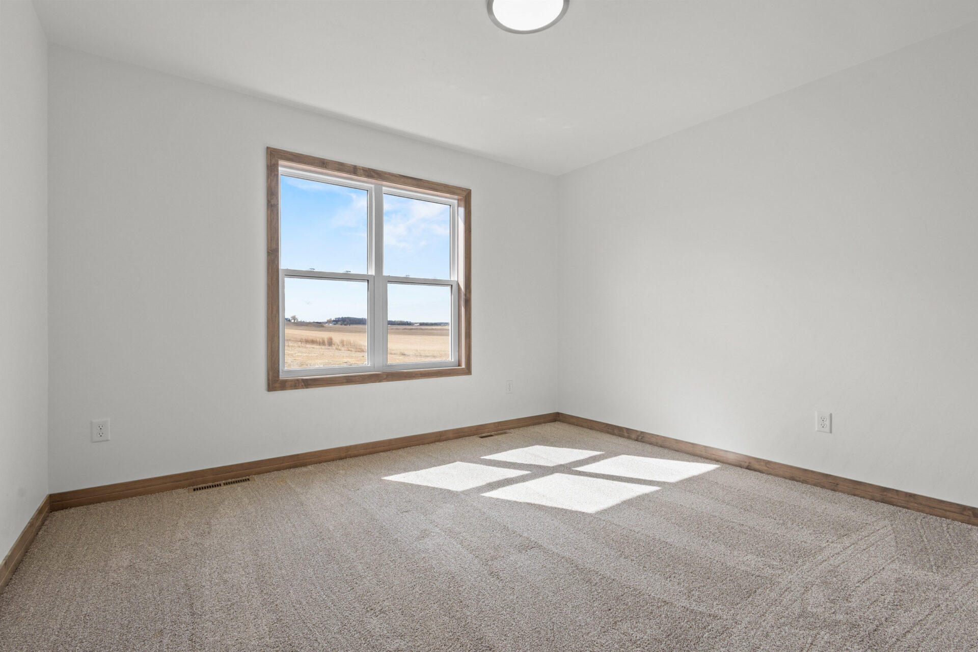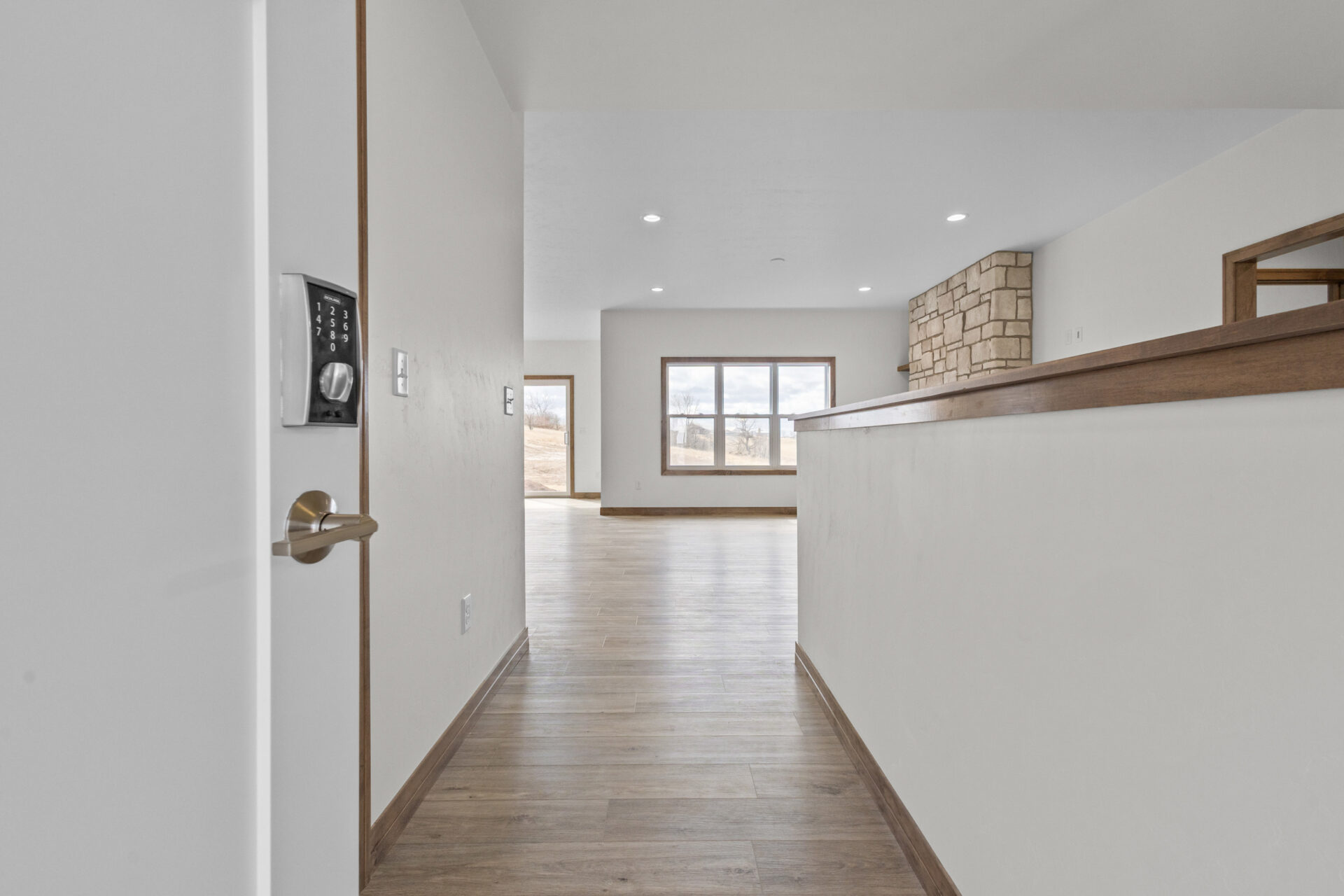 BUILT BY MEACHAM DEVELOPMENT, INC.-A FOCUS ON ENERGY CERTIFIED HOME. Step into this stunning property situated on a 1+ acre lot with unbelievable views of rolling hills. The kitchen features custom maple cabinets in Fawn stain, quartz countertops, & stunning tile backsplash. Relax next to your HH 55” Scion Trinity 3 Sided Linear Electric Fireplace surrounded from floor to ceiling with Niveo Volterra stone. A custom bench & shelving make this space complete! The primary suite is a private retreat. Unfinished LL HAS 9' CEILINGS is stubbed for a bathroom & FULL WALK-OUT for future expansion. Driveway apron is gravel. Water isa community well & there is a homeowner's association for the well. Stubbed for water softener. Water softener is recommended for this subdivision.