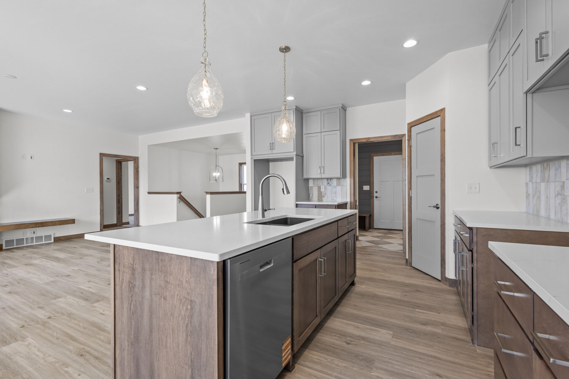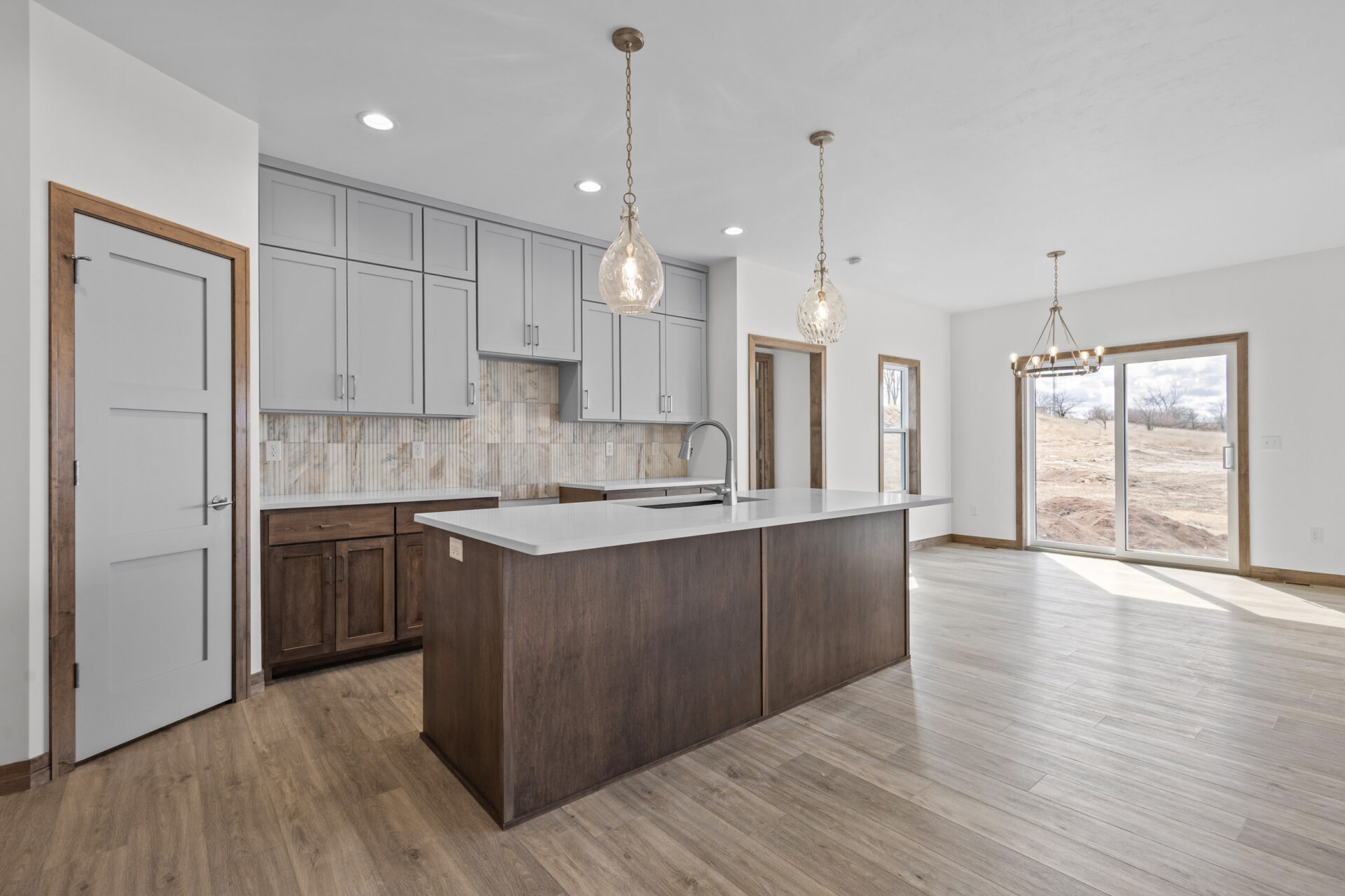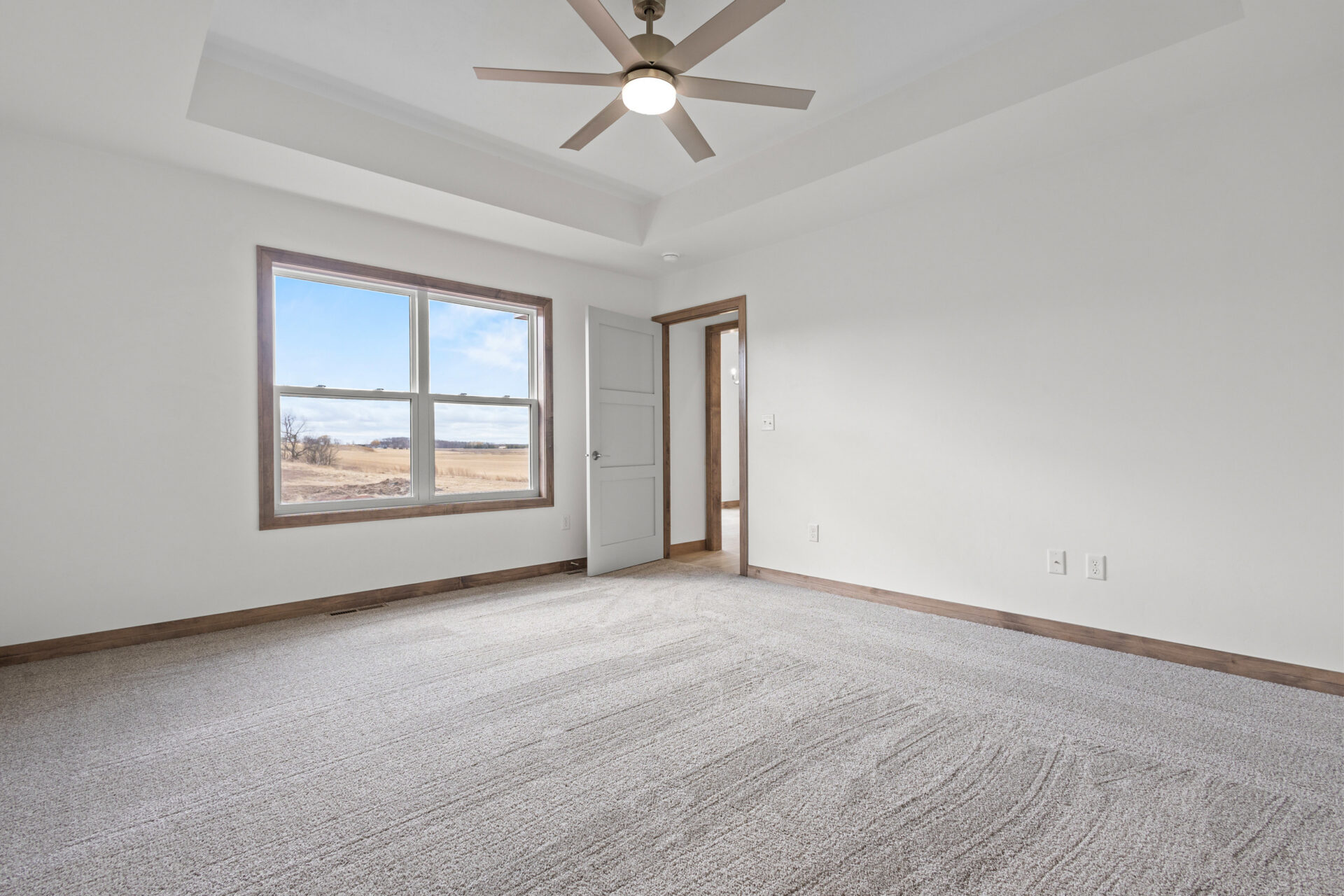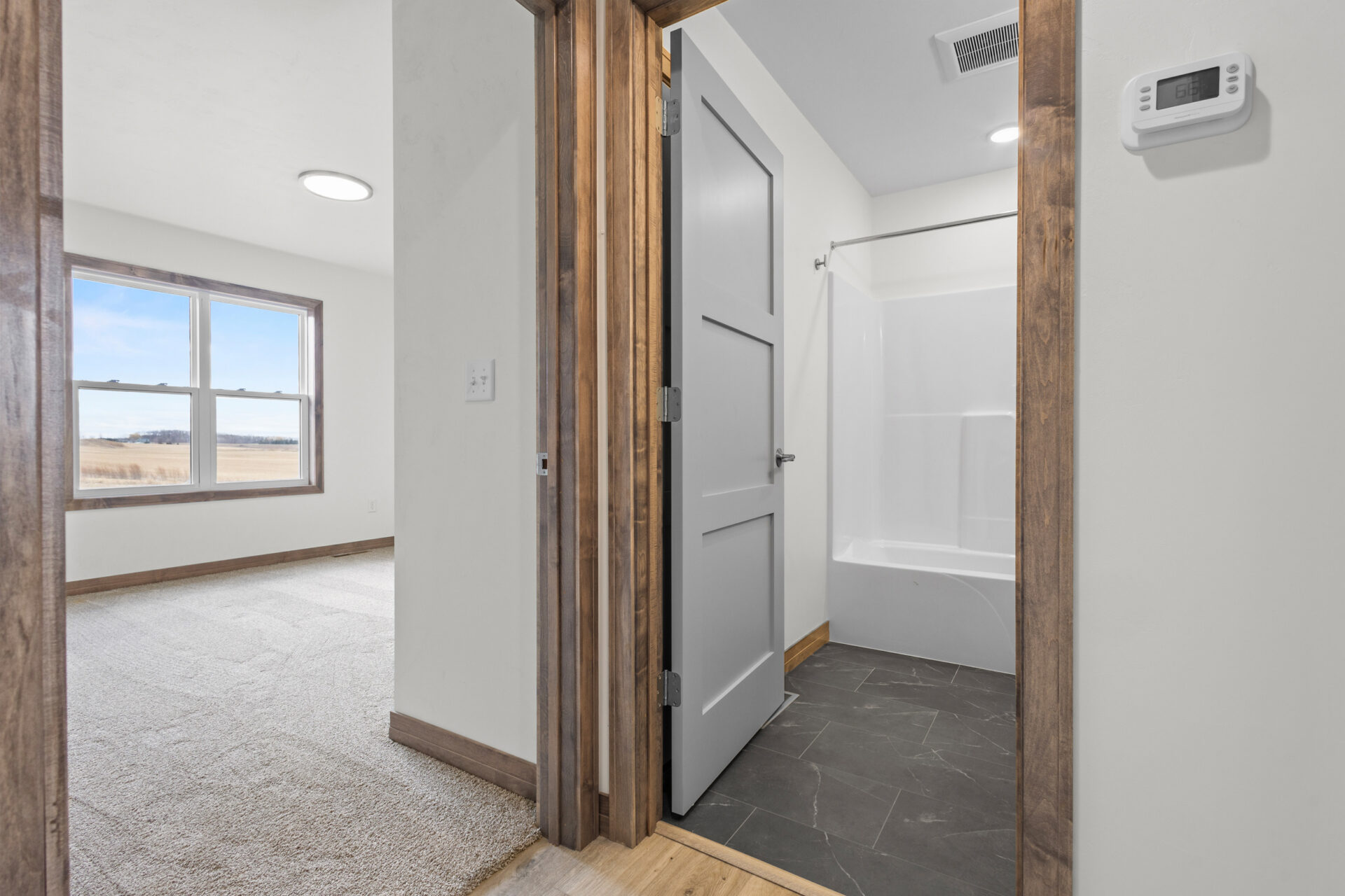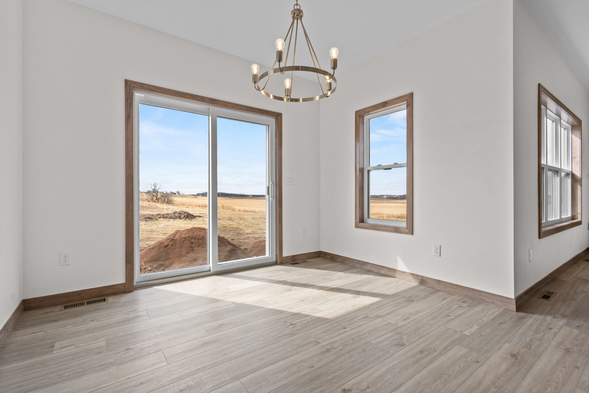 BUILT BY MEACHAM DEVELOPMENT, INC.-A FOCUS ON ENERGY CERTIFIED HOME. Step into this stunning property situated on a 1+ acre lot with unbelievable views of rolling hills. The kitchen features custom maple cabinets in Fawn stain, quartz countertops, & stunning tile backsplash. Relax next to your HH 55” Scion Trinity 3 Sided Linear Electric Fireplace surrounded from floor to ceiling with Niveo Volterra stone. A custom bench & shelving make this space complete! The primary suite is a private retreat. Unfinished LL HAS 9' CEILINGS is stubbed for a bathroom & FULL WALK-OUT for future expansion. Driveway apron is gravel. Water isa community well & there is a homeowner's association for the well. Stubbed for water softener. Water softener is recommended for this subdivision.